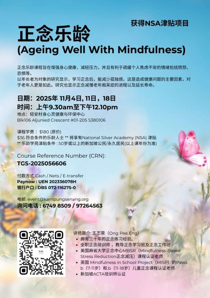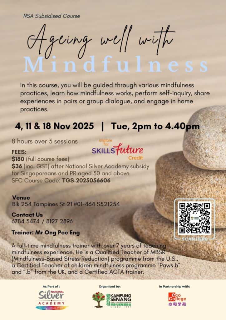 Ageing Well With Mindfulness – Tuesday, 4,11, 18 Nov 2025 – National Silver Academy (NSA) subsidy + SkillsFuture Credit (SFC)