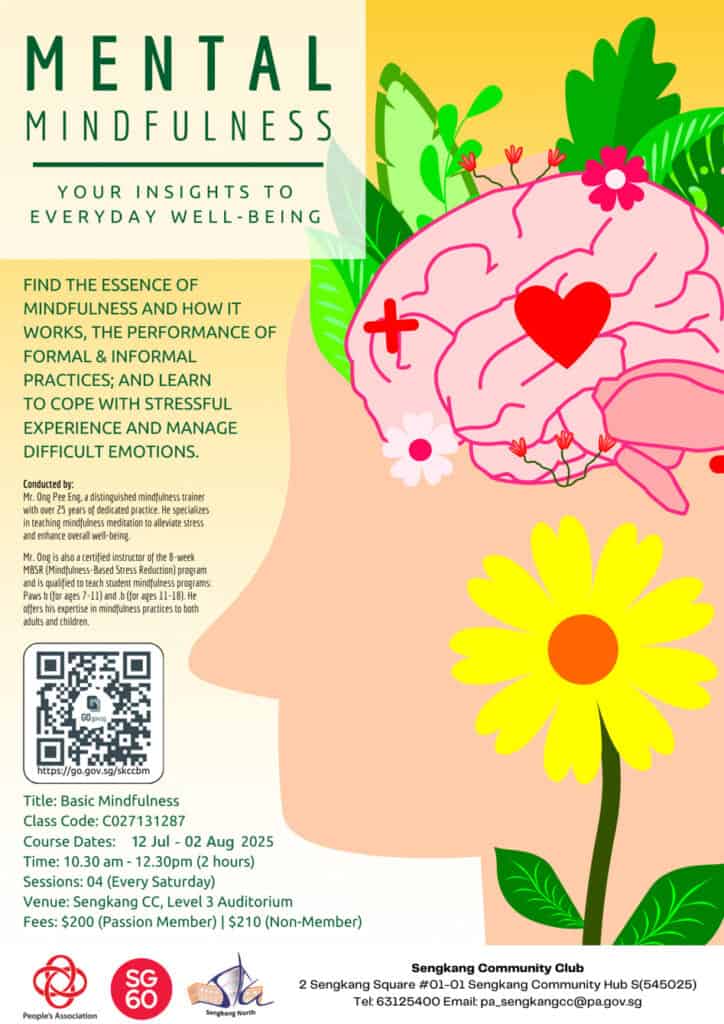 Sengkang CC – 12 Jul – 02 Aug 2025 https://www.onepa.gov.sg/courses/basic-mindfulness-4-c027131287